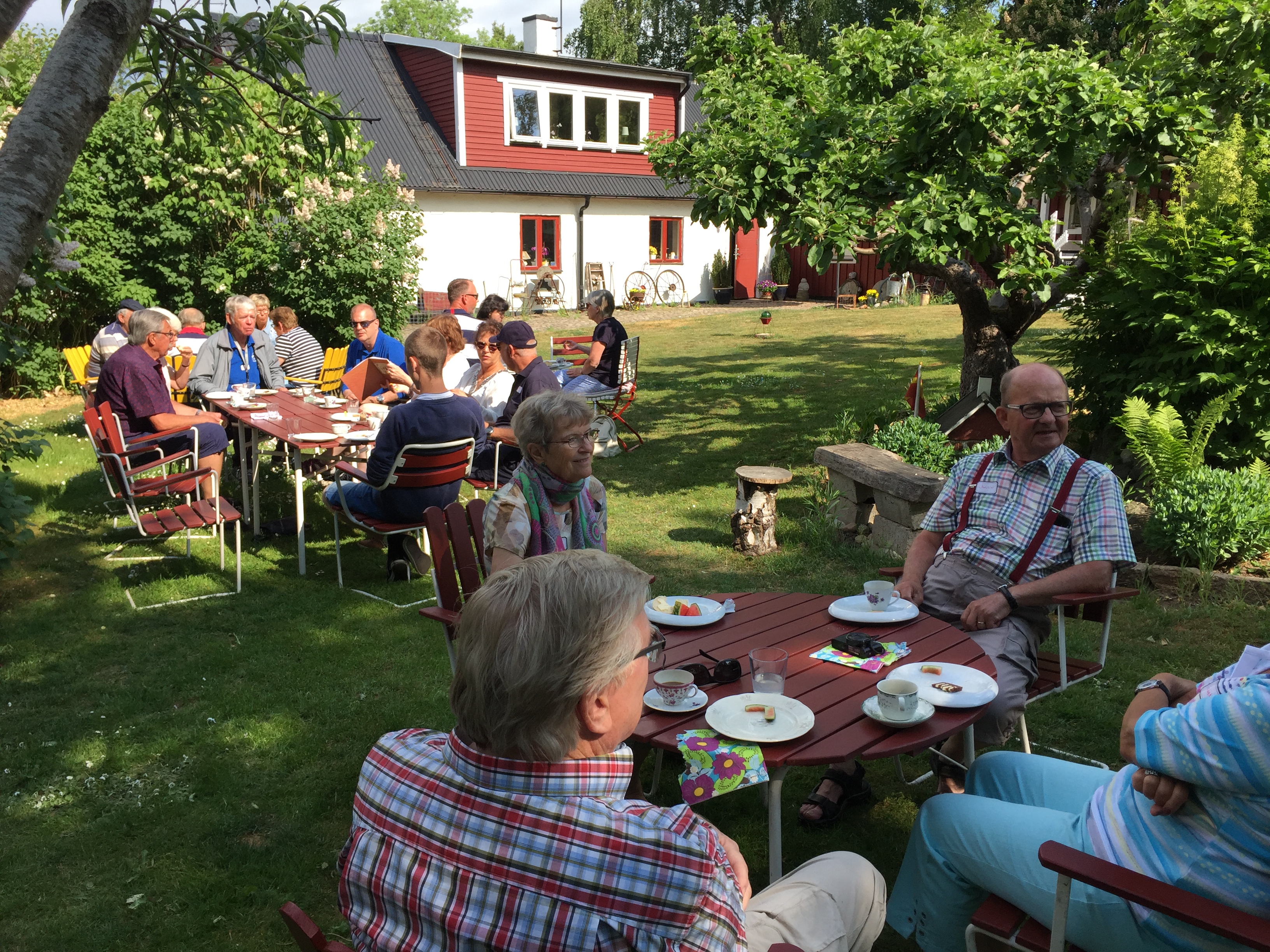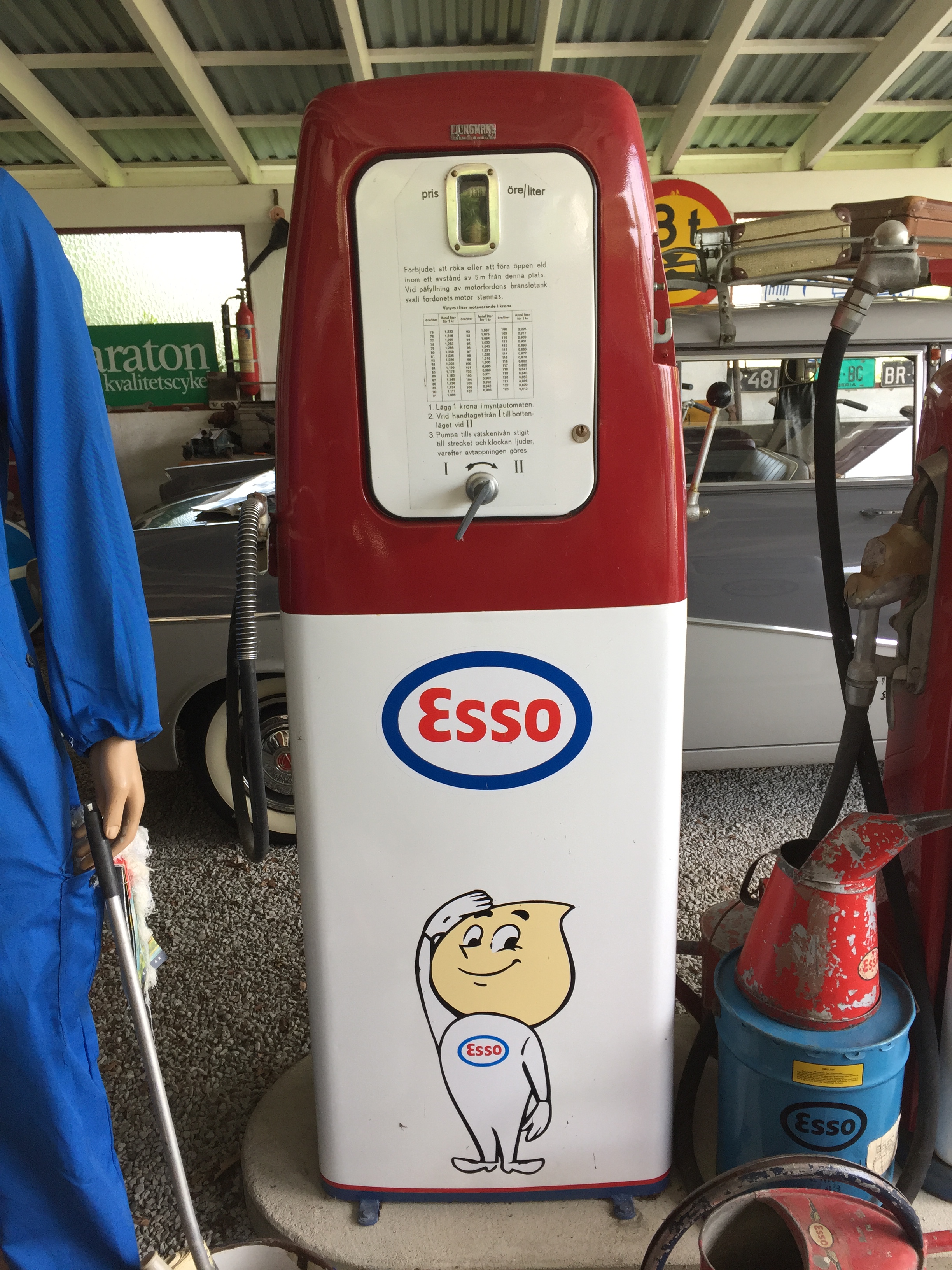 Därefter åkte vi till Inger och Håkan i Assartorp. Där fick vi se deras privata samling vid den uppbyggda ESSO macken av allahanda prylar från 50-60-talet, veteranbilar mopeder samt en veteranhusvagn och en super fin p1800 mm. Ett unikt tillfälle med unika prylar med en unik morgonfika som intogs med förtjusning.
