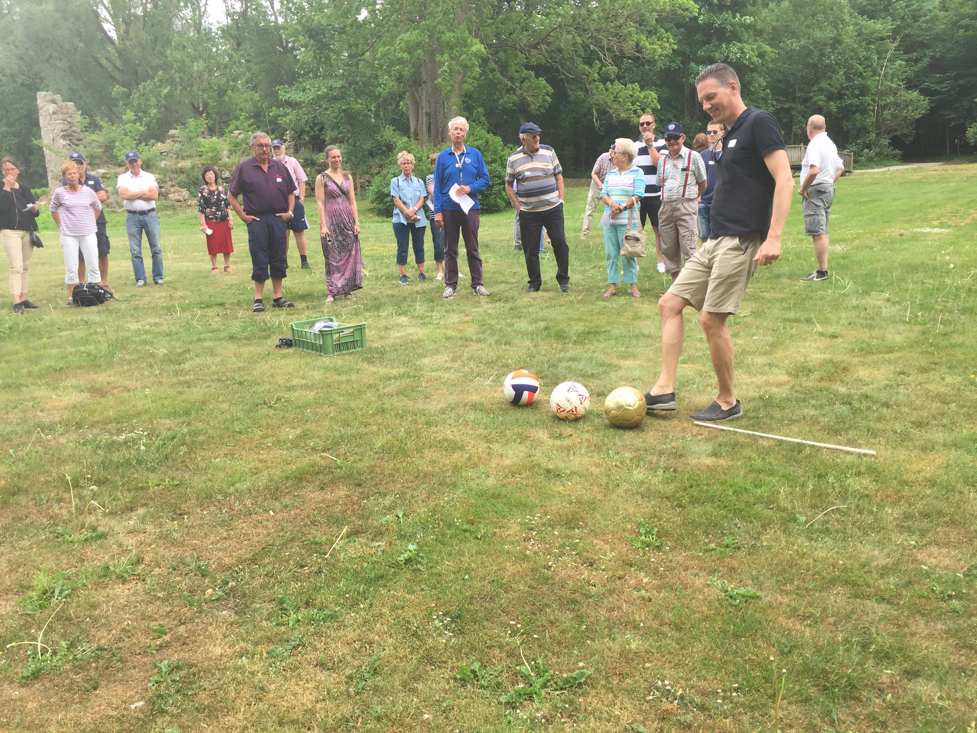 Efter intagandet av den skånska maden (”skånska” för mat) med nya knudor )”skånska” för potatis) tog vi småvägarna genom Skåne till Skarhults Slott. Där väntade lite praktiska precisionsövningar som gällde att ha en handfast hand och fot. Skjuta boll i ett minimalt mål, ringkastning, samt kast med liten och stor stövel där många skratt och jubel uppstod.